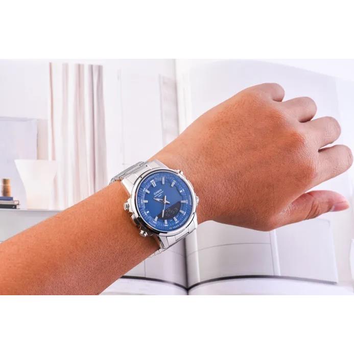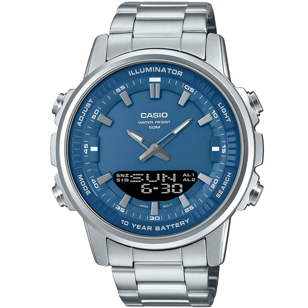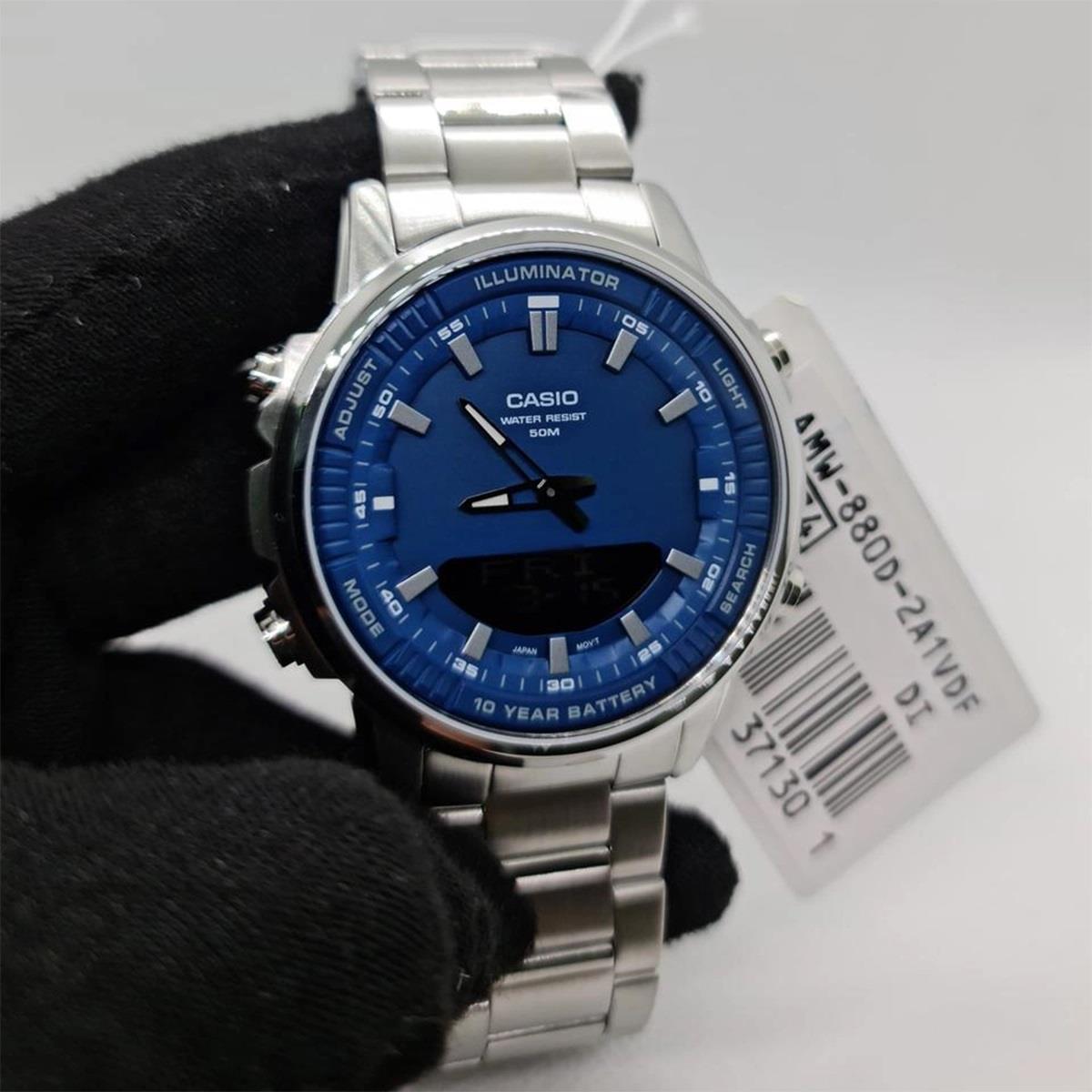 ساعت Casio AMW-880D-2A1VDF با قاب و بند استیل، صفحه ترکیبی و مقاومت آب ۵۰ متر، انتخابی عالی برای ورزشکاران و علاقهمندان به ساعتهای مقاوم.