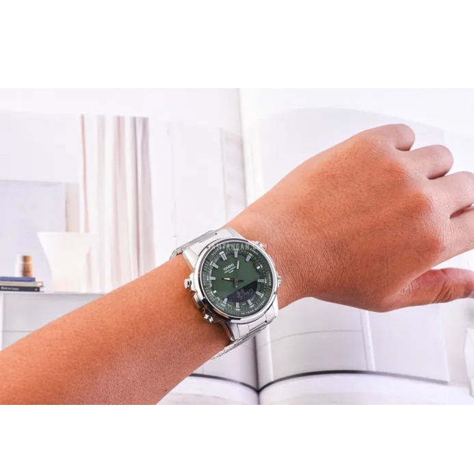 ساعت Casio AMW-880D-3AVDF با قاب و بند استیل، صفحه ترکیبی آنالوگ-دیجیتال و مقاومت آب ۵۰ متر، انتخابی مطمئن برای استفاده روزانه و ورزش.